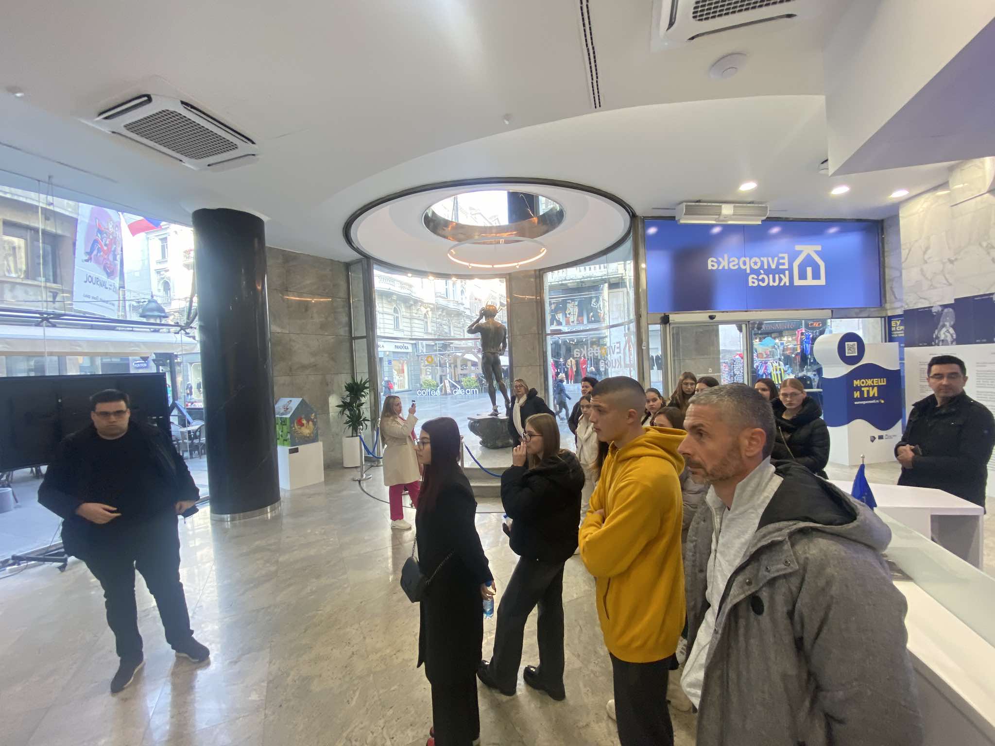 Prilikom posete Evropske kuće u Beogradu grupa je mogla da se upozna sa radom Evropske kuće, ali i da dobiju informacije o konkursima kao što su Erazmus+ i Evropska škola debate.